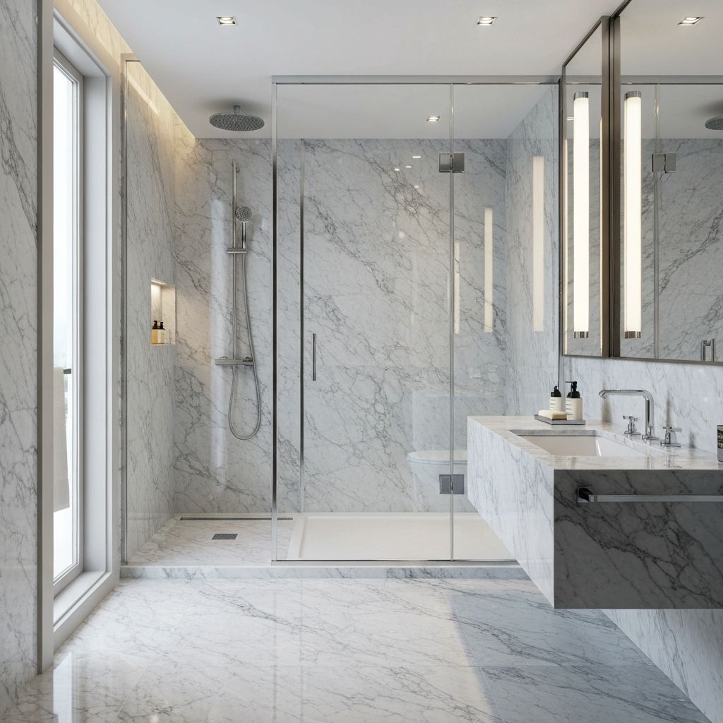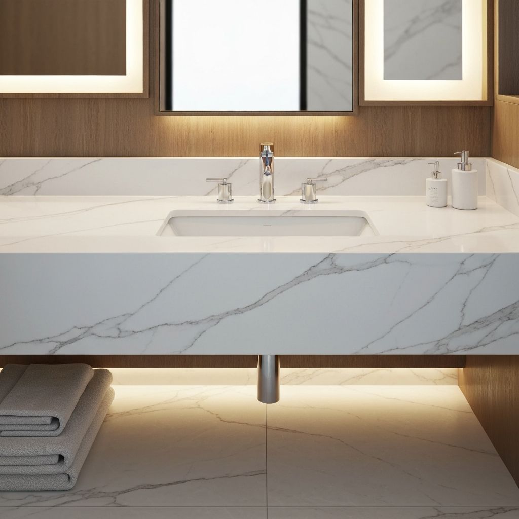 Móveis premium em compósito para casas de banho sofisticadas. Design personalizado, qualidade superior, instalação profissional.